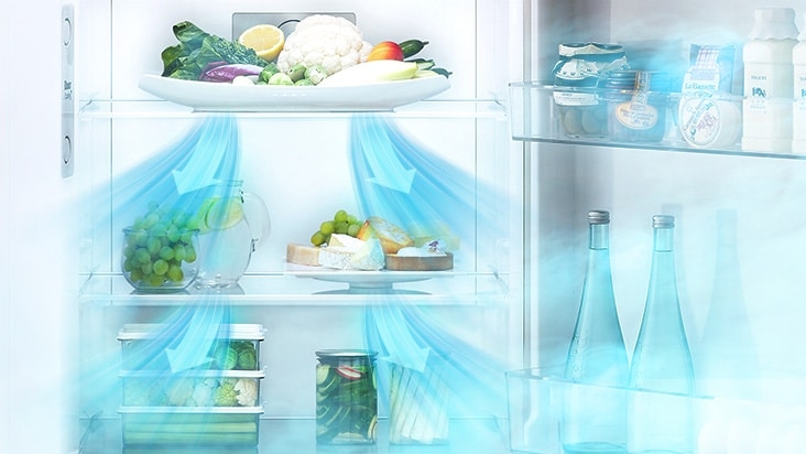 Ngoài ra, hệ thống luồng khí lạnh đa chiều Multi Air Flow được tích hợp trên mẫu tủ lạnh này có tác dụng quan trọng trong việc làm lạnh nhanh và phân bổ khí lạnh đồng đều trong tủ lạnh. Hệ thống này sẽ đưa khí lạnh đến từ nhiều hướng khác nhau bao gồm phía trước, hai bên và cả cánh tủ. Điều này cho phép thực phẩm được bao quanh và tiếp xúc với luồng khí lạnh đến từ mọi hướng, thực phẩm sẽ tươi ngon hơn trong thời gian dài.