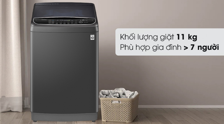 Máy giặt lồng đứng TH2111SSAB có khối lượng giặt lên đến 11 kg, giúp đáp ứng nhu cầu giặt giũ của các thành viên trong gia đình một cách dễ dàng. Đối với những gia đình trên 7 thành viên hoặc có thói quen dồn nhiều quần áo giặt một lần, thì máy giặt LG TH2111SSAB là một sự lựa chọn hoàn hảo.