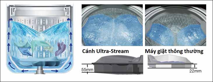 Hiệu quả giặt sạch mạnh mẽ, bảo vệ quần áo nhờ công nghệ Ultra-Stream Shower