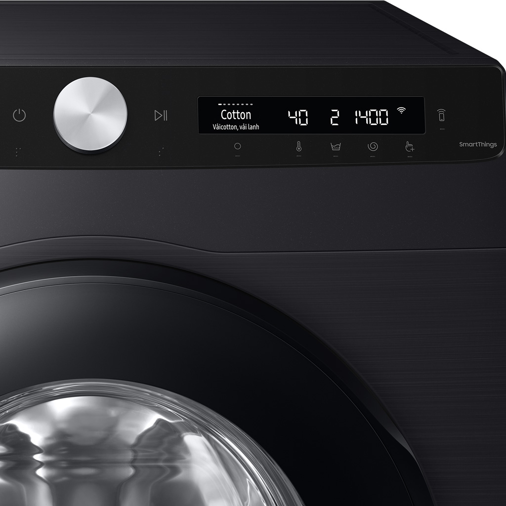Bảng điều khiển của máy giặt Samsung gồm: nút vặn, bảng cảm ứng & màn hình hiển thị. Bảng điều khiển có chú thích song ngữ Anh - Việt, giúp bạn sử dụng máy một cách dễ dàng.