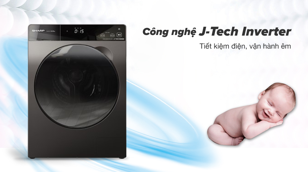 Công nghệ J-tech Inverter được tính hợp trong quá trình vận hành giúp máy giặt Sharp Inverter 10.5 kg ES-FK1054PV-S có thể tiết kiệm điện năng hơn 30 - 50% so với máy giặt thông thường, giúp giảm thiểu tối đa chi phí điện hằng tháng cho gia đình.