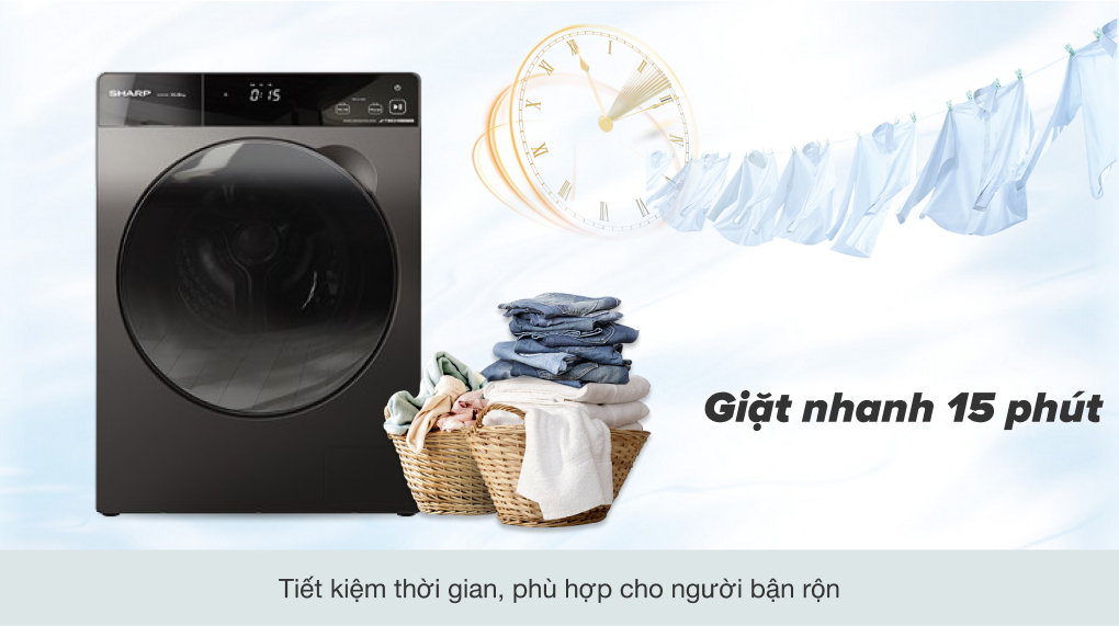 Giặt sạch quần áo siêu tốc, tiết kiệm thời gian với chế độ giặt nhanh 15 phút