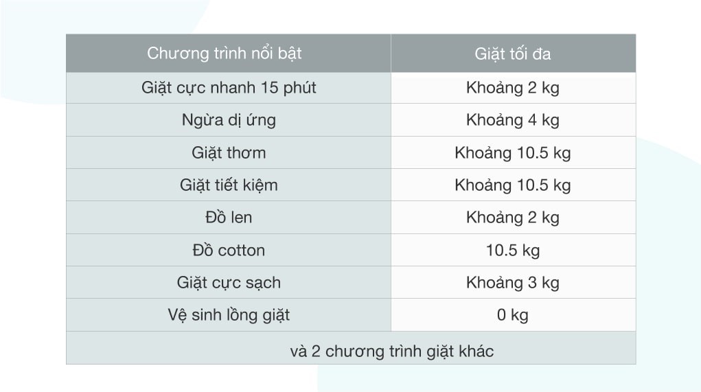 Khối lượng giặt 10.5 kg, phù hợp với gia đình trên 7 thành viên