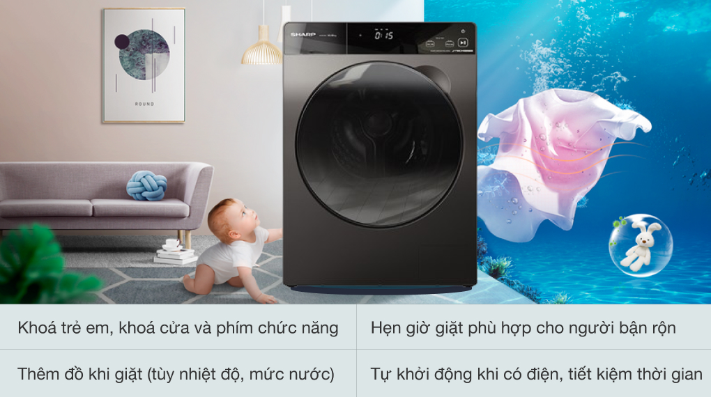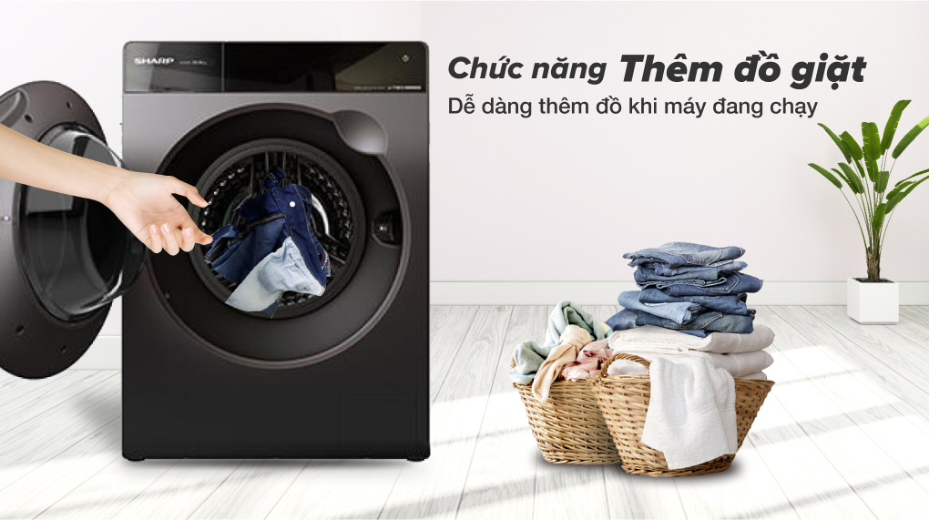 Nếu là người hay quên, gom đồ đi giặt hay bị sót thì máy giặt Sharp Inverter sẽ làm bạn hài lòng với tính năng thêm đồ khi máy đã vận hành vô cùng tiện lợi.