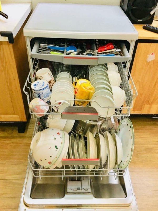 - Vứt bỏ những thức ăn thừa còn trên bát đĩa trước khi cho vào máy rửa chén bát.