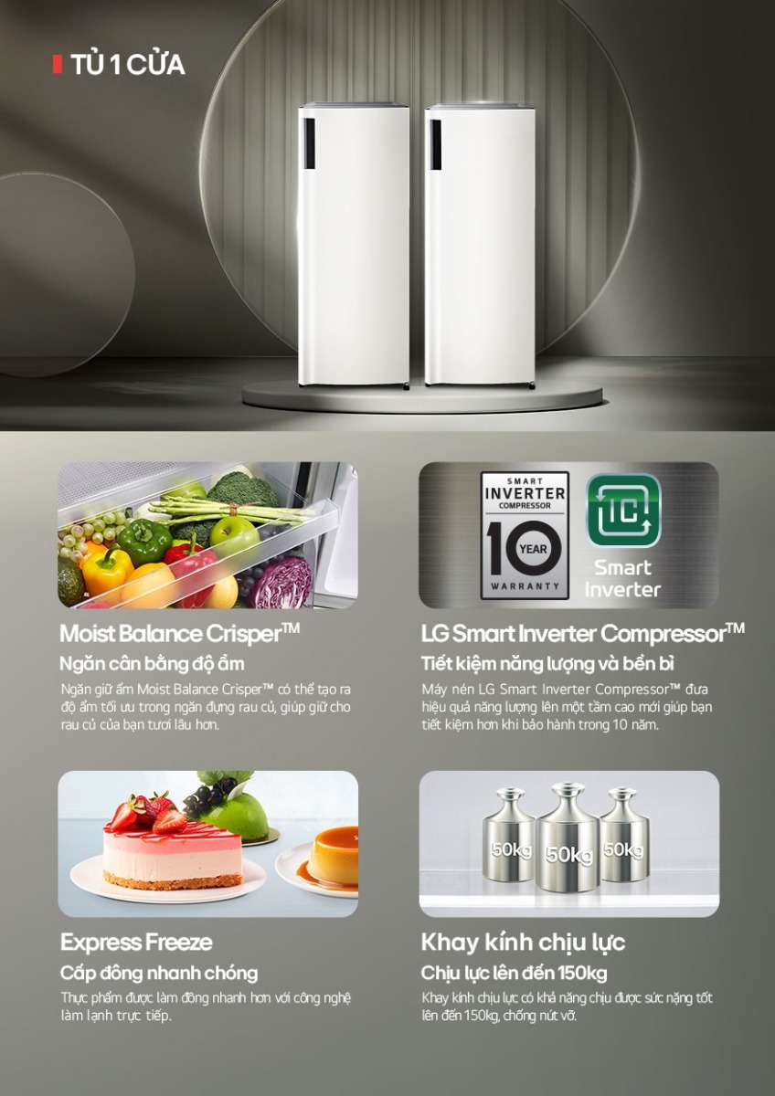 Tủ đông đứng LG LOF16BGM - Làm lạnh nhanh, tiết kiệm điện với máy nén Inverter
