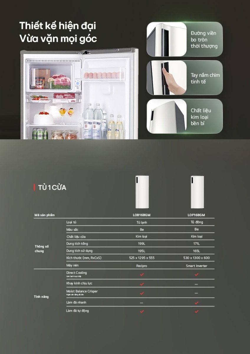 Đặc điểm sản phẩm Tủ đông LOF16BGM