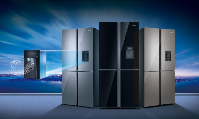 Mẫu tủ lạnh 4 cửa dung tích lớn vẫn là một trong những sản phẩm bán chạy hàng đầu của Aqua, sau hơn 3 năm ra mắt.
