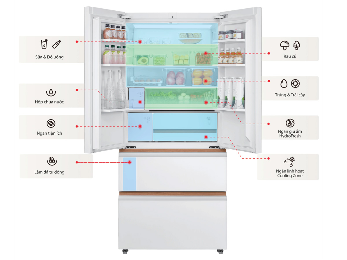 - Ngăn Cooling Zone: bảo quản thực phẩm thông minh với nhiệt độ -1℃