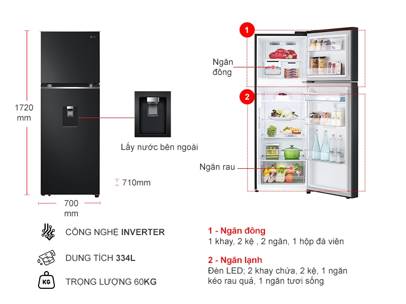 Giới thiệu khái quát Tủ lạnh LG Inverter 334 lít LTD33BLM nhập khẩu Indonessia