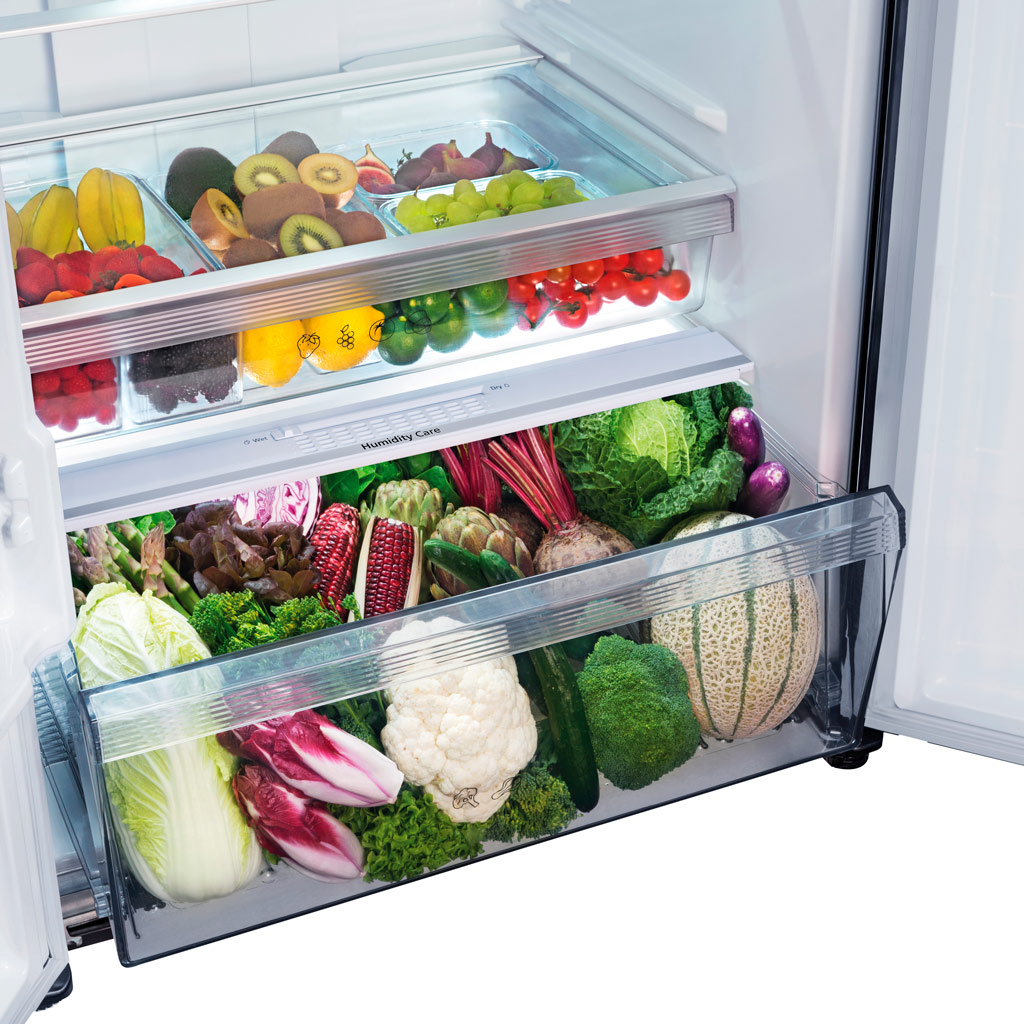 Ngăn rau củ kép giúp kiểm soát độ ẩm thực phẩm, tươi ngon