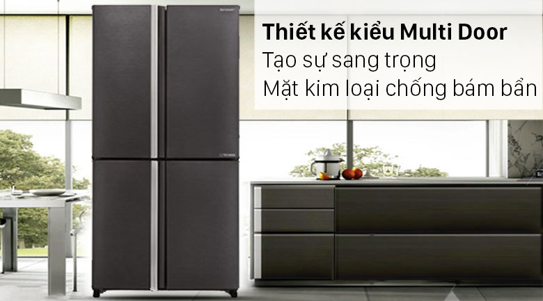 Kiểu tủ lạnh Multi Door với 4 cánh mở độc lập kiểu cửa Pháp cực kỳ tiện lợi với ngăn mát và ngăn đá rộng rãi, dễ dàng lưu trữ những thực phẩm có kích thước bề ngang lớn. Ngăn mát nằm phía trên giúp bạn dễ dàng quan sát và lấy thực phẩm thường dùng mà không cần cúi xuống tìm kiếm nhiều. Chiếc tủ lạnh Sharp này có dung tích sử dụng 567 lít, trong đó dung tích ngăn đá là 203 lít và ngăn mát là 364 lít, thoải mái lưu trữ nhiều loại thực phẩm cho gia đình trên 5 thành viên.