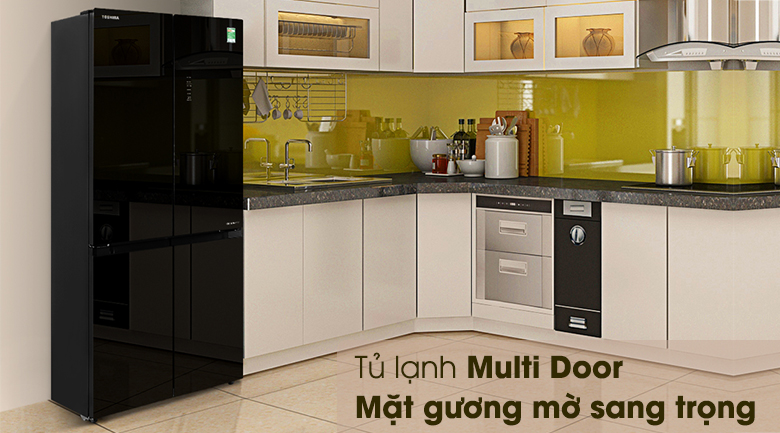 Tủ lạnh Toshiba 511 lít 4 cửa inverter RF610WE-PGV(22)-XK được thiết kế với tông màu đen sang trọng, bề mặt tủ được làm bằng chất liệu gương mờ sáng bóng vô cùng tinh tế. Cùng với đó là kiểu dáng thiết kế vô cùng hiện đại multi door, chắc chắn chiếc tủ lạnh sẽ là điểm nhấn nổi bật trong không gian bếp nhà bạn.