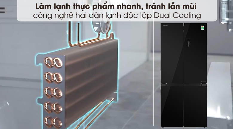 Với công nghệ Dual Cooling, thực phẩm trong tủ lạnh Toshiba inverter GR-RF610WE-PGV(22)-XK được làm lạnh cực nhanh với 2 dàn lạnh độc lập, đồng thời tránh lẫn mùi thực phẩm trong suốt thời gian bảo quản.
