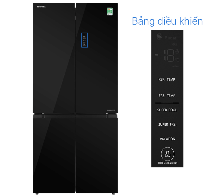 Để giúp người dùng yên tâm sử dụng tủ lạnh mà không phải lo lắng về chi phí tiền điện hàng tháng, tủ lạnh Toshiba 511 lít 4 cửa inverter RF610WE-PGV(22)-XK được trang bị công nghệ Origin Inverter giúp điều chỉnh vòng quay của máy nén và giúp hỗ trợ tủ lạnh hoạt động êm ái, bền bỉ hơn bao giờ hết. Đặc biệt hơn là bảng điều khiển được thiết kế ngay bên ngoài tủ, giúp người dùng hạn chế tình trạng mở cửa tủ, tiết kiệm điện tối đa cho người dùng.