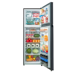 Toshiba Inverter 253 lít GR-RT329WE-PMV(52) được thiết kế theo kiểu tủ lạnh ngăn đá trên quen thuộc với phần lớn người tiêu dùng Việt. Ngoài ra, chất liệu cửa tủ còn được làm bằng kim loại đen Sapphire tinh tế, phù hợp lắp đặt trong không gian nhà bếp của gia đình.